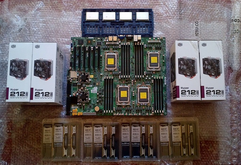 ) a G34 quad rig.To date I've collected the following parts... ...4 x AMD Opteron 6378 (a mixture of new & used tray cpu's, although prices were almost identical and surprisingly reasonable) ...Super Micro H8QGL-6F ...64GB (16x4) Crucial Ballistix Sport VLP DDR3-1600 1.5 / 1.35V ...4 x Cooler Master Hyper 212 EVO (to be fitted using the 'Musky Mod' extension brackets) and some additional fans for push-pull operation ...Jou Jye GTX-U322D-FD Super Tower case (supports HPTX but I'll mod it for SWTX mount points). Uses the same sub-frame as the Rosewill Blackhawk Ultra Super Tower & Xigmatek Elysium I've pretty much covered my outlay so far but there are still a few items needed... ...PSU (maybe Seasonic if I can find the right deal) ...Graphics (was thinking of the new Nvidia 970) ...USB3 card (for case ports) ...Storage ...Additional / replacement case fans A few pics of the above ![]() ![]() ![]() ![]() ![]() Links to the case http://www.jj-computer.com/artinfo.php?artnr=A 1930 http://www.jj-computer.com/media/cm_..._MidiTower.pdf |